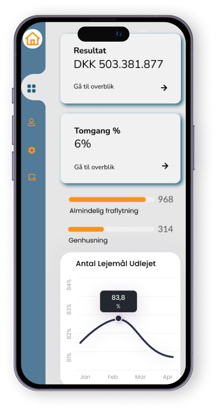 - Skabe gennemsigtighed i nøgletal som husleje, tomgang og budget.